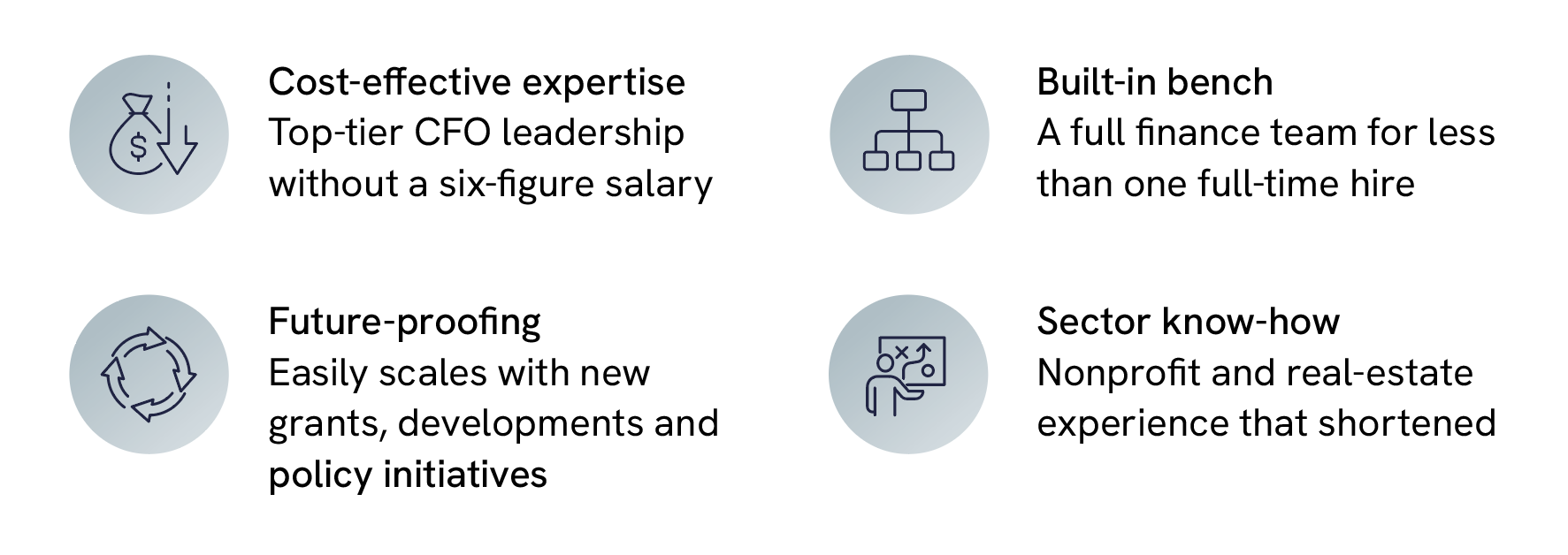 With CFO Leverage as a partner, The Works, Inc. gained stronger internal controls, faster monthly closes and cleaner audit processes—all of which enabled more confident decision-making across their housing, food and health initiatives. Leadership could shift their focus from managing accounting tasks to advancing the mission and expanding impact. As The Works continues to grow its footprint in affordable housing and neighborhood revitalization, the scalable support and sector expertise provided by CFO Leverage ensures their financial infrastructure grows right alongside it.